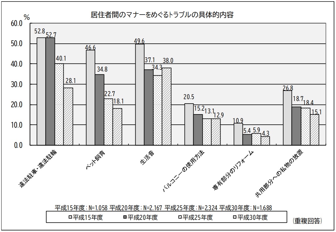 実際に、国が定期的に行っているマンションなどの集合住宅に関する調査では、集合住宅で発生する居住者間トラブルの原因について「音の問題」がナンバーワンになっているのです。