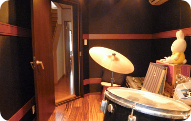 家庭用バンド・ドラムスタジオへの防音工事の一例を紹介します。
