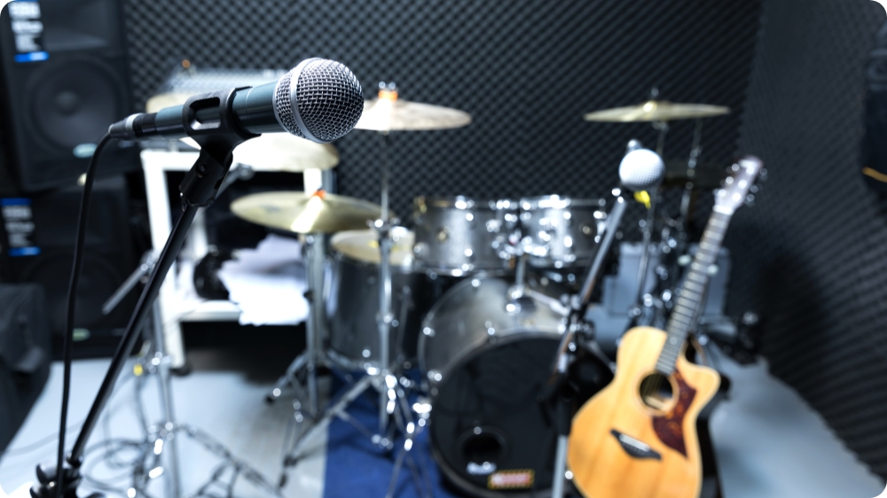 リハーサルスタジオでは最大120dBの音量に対応する高性能な防音が必要です。レコーディングスタジオでは外部への音漏れ防止と騒音の侵入を防ぎ、快適な録音環境を整えることが重要です。